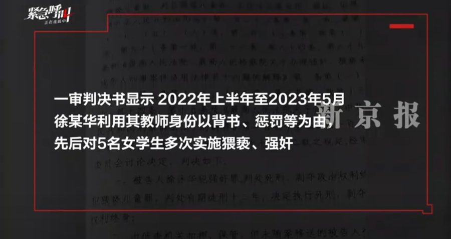 据此前报道,2024年5月28日,一审法院湖南省衡阳市中级人民法院以强奸罪判处被告人徐某华死刑,剥夺政治权利终身;以猥亵儿童罪,判处被告人徐某华有期徒刑12年,决定合并执行死刑,剥夺政治权利终身。